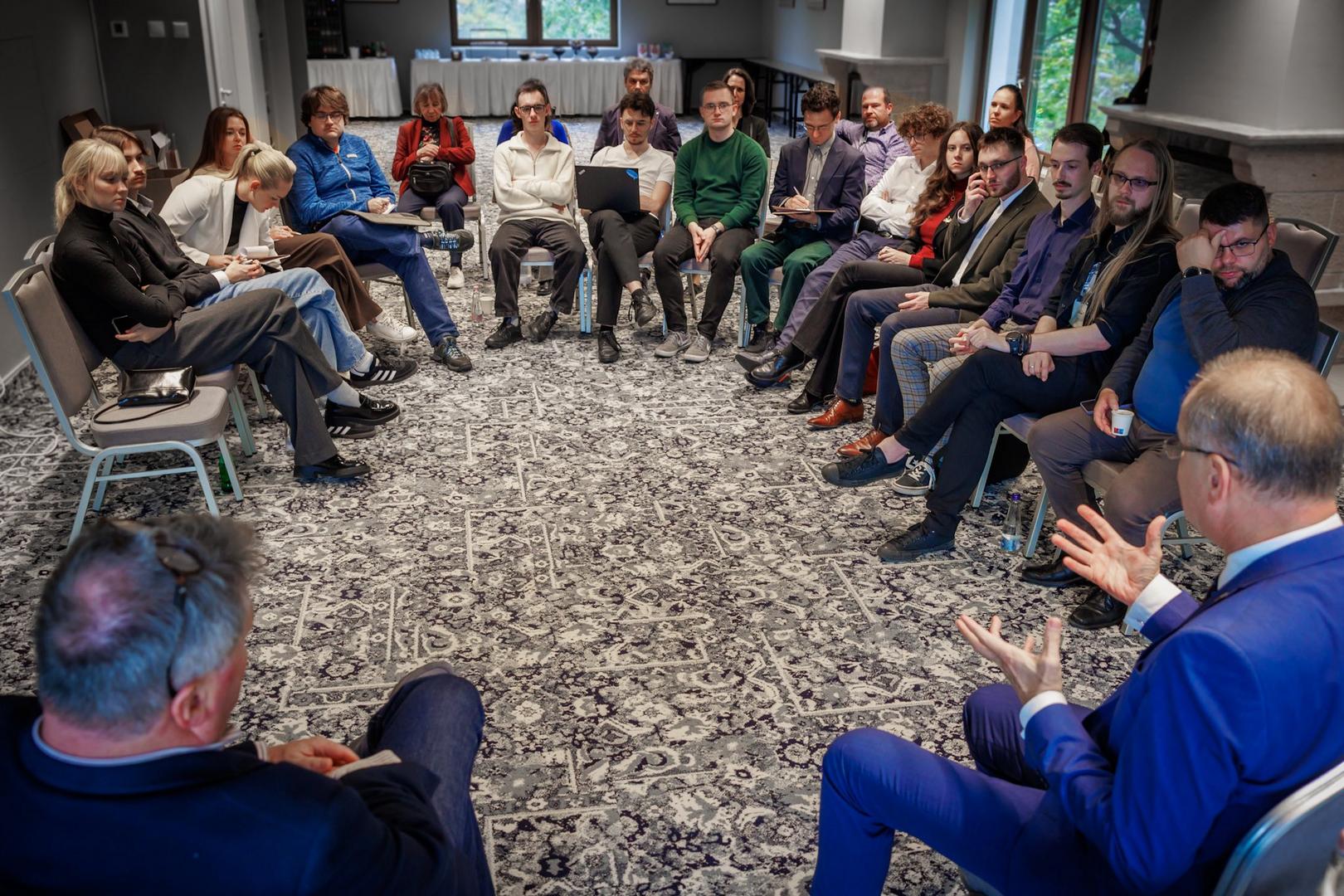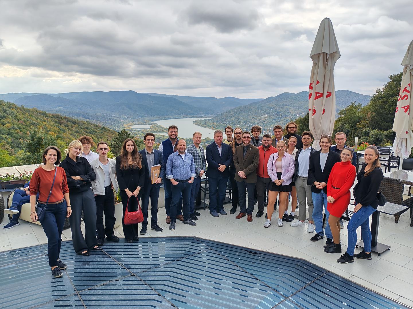 Pénteken Kamil Glinka, a Wroclawi Egyetem oktatója arról beszélt, hogyan próbálják a közép-európai országok megvalósítani az Európai Zöld Megállapodás céljait – a klímasemlegességet, a körforgásos gazdaságot, a fenntartható mezőgazdaságot és a klímaigazságosságot, miközben figyelembe kell venniük a politikai helyzetüket is. Az NABC-modell (Need – Approach – Benefit – Competition) segítségével a jelenlévők különböző javaslatokat mutattak be az egészségügy, a lakhatás, a közlekedés, a demográfia és a mezőgazdaság területén. Bartóki-Gönczy Balázs, az NKE Államtudományi és Nemzetközi Tanulmányok Karának dékánhelyettese az európai űrkutatás jövőjéről beszélt, kiemelve a műholdas aszálymegelőzést, az anti-szatellit technológiák fejlesztését és az önálló európai rakétarendszerek stratégiai és biztonságpolitikai fontosságát, amelyek segíthetik Európát, hogy lépést tartson a globális szereplőkkel. A közelmúltban lezajlott csehországi választások kapcsán Vít Hloušek, a Prágai Metropolitan Egyetem oktatója tartott előadást, amelyben részletesen elemezte a cseh politikai rendszer jelenlegi helyzetét és a kormánykoalíciók kialakulásának folyamatait. A délután folyamán a College of Visegrad+ hallgatói mutatták be saját kutatásaikat. Daniel Šárovec „A politikai intézményekbe vetett bizalom a 21. században: a Cseh Köztársaság esete” című kutatását a Horizon Europe TRUEDEM projekt keretében készítette, amely az európai intézmények iránti bizalom különbségeit vizsgálja. Lux Benjámin pedig bemutatta a 2025-ös Országos Tudományos Diákköri Konferencia (OTDK) díjnyertes, „Lengyelország és Magyarország Ukrajna-politikájának összehasonlító elemzése az orosz–ukrán háború tükrében” című kutatását. A nap zárásaként a résztvevők hangulatos, reneszánsz kort idéző lakomán vettek részt.