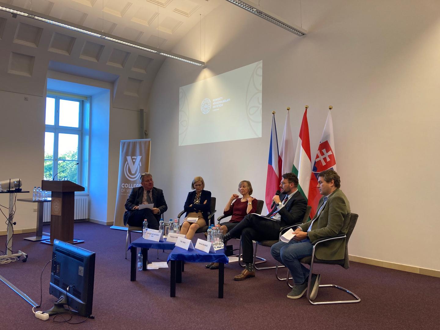 A megnyitó konferenciára Budapesten, a Nemzeti Közszolgálati Egyetemen került sor. Prőhle Gergely programigazgató úr köszöntő szavaiban felhívta a figyelmet a téma fontosságára a közép-európai régió szempontjából, valamint megköszönte a Külgazdasági és Külügyminisztérium támogatását a rendezvény létrejöttéhez. Deli Gergely, az NKE rektora örömét fejezte ki, hogy az Egyetem College of Visegrad+ programja immár találkozási pontként szolgál a közép-európai fiatalság számára. Czékus Bálint, a Külgazdasági és Külügyminisztérium Közép-Európa Főosztályának vezetője röviden ismertette a Visegrádi Együttműködés 2025-2026-os magyar elnökségének prioritásait. Ezt követően Ugrósdy Márton, a Miniszterelnökség helyettes államtitkára tartott előadást a közép-európai régió szerepéről a magyar nemzetstratégiában. A beszédeket kerekasztal beszélgetés követte, melyben Szilágyiné Bátorfi Edit, Magyarország bécsi nagykövete, a Nemzetközi Visegrádi Alap korábbi ügyvezető igazgatója, Dagmar Vránová, a Cseh Köztársaság Ipari és Kereskedelmi Minisztériumának szakértője, Piotr Arak, a VeloBank közgazdásza, a Varsói Egyetem oktatója, valamint Marcel Dolobáč, a kassai Pavol Jozef Šafárik Egyetem Jogi Karának dékánhelyettese osztották meg gondolataikat Európa, azon belül is a közép-európai térség versenyképességével kapcsolatos legfontosabb kihívásokról.
