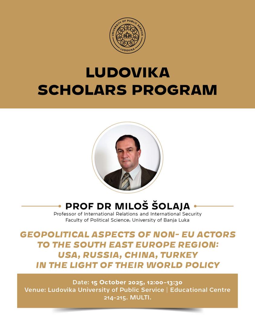 A Nemzetközi Iroda Ludovika Scholars Programjának keretében kerül sor Prof Dr Miloš Šolaja nyilvános előadására, melyre regisztrálni ITT lehetséges.