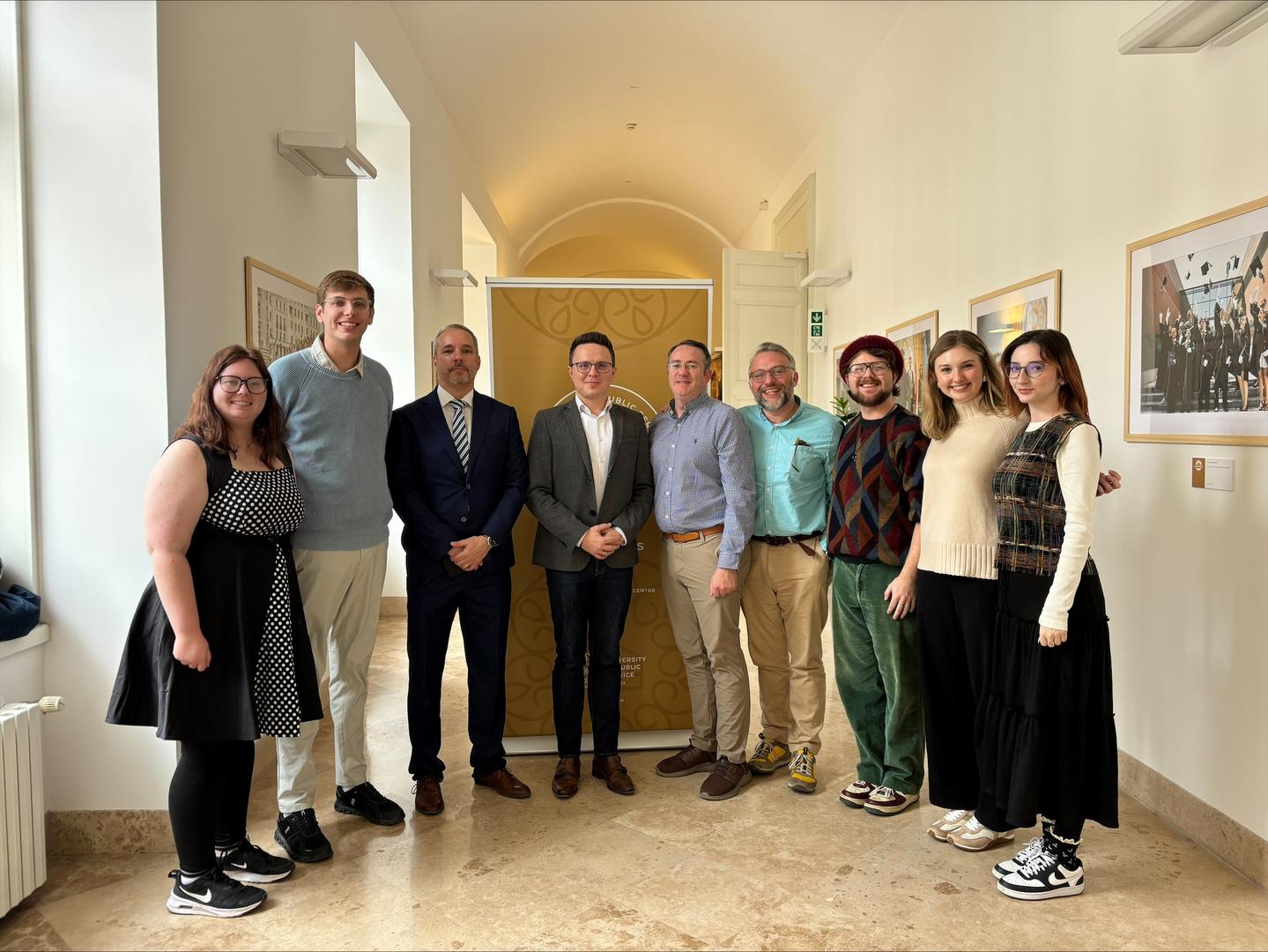 2026. március 19-én a John Lukacs Intézet (JLI) munkatársai fogadták a Morehead State University (Kentucky, Egyesült Államok) delegációját, amelyet James Masterson, a Morehead State University oktatója vezetett, és amelyhez öt hallgató is csatlakozott. A delegáció immár második alkalommal látogatott el a JLI-be, tovább erősítve a két intézmény közötti szakmai kapcsolatokat. A program elején Tárnok Balázs, a John Lukacs Intézet kutatásért felelős igazgatója köszöntötte a résztvevőket, és átfogó képet adott az Intézet tevékenységéről és kutatási irányairól.
